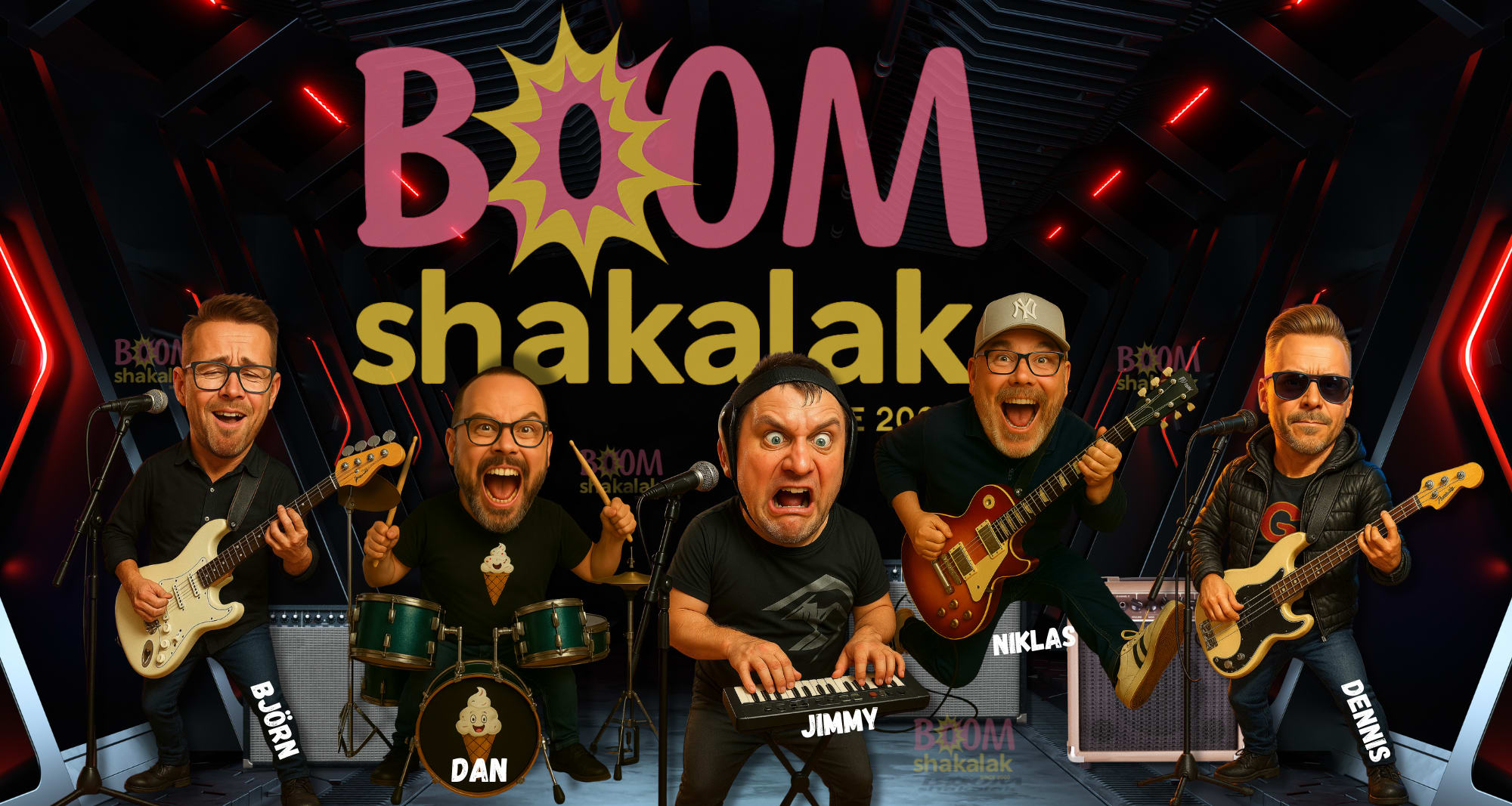 När Boomshakalak kliver upp på scenen finns det bara en väg – framåt i fullt ös! Med en spellista som sträcker sig från funkiga 70-talshits till dagens radiofavoriter, är det här bandet din garanterade dansgaranti!