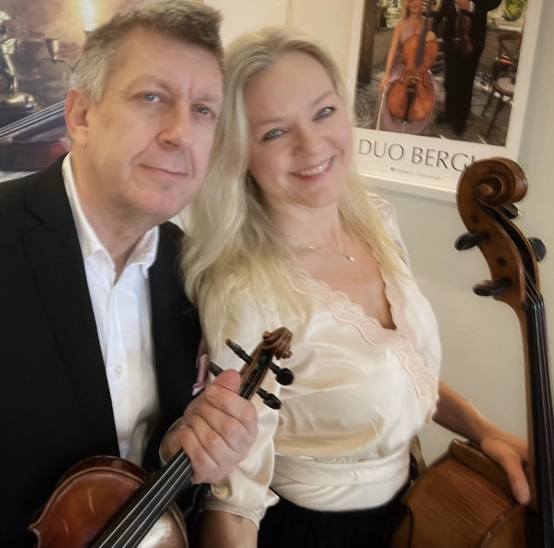Duo Bergh är oerhört professionella och talangfulla. De förgyllde vår bröllopsdag med sitt vackra spelade och kunde ordna med våra efterfrågade låtar utan problem.