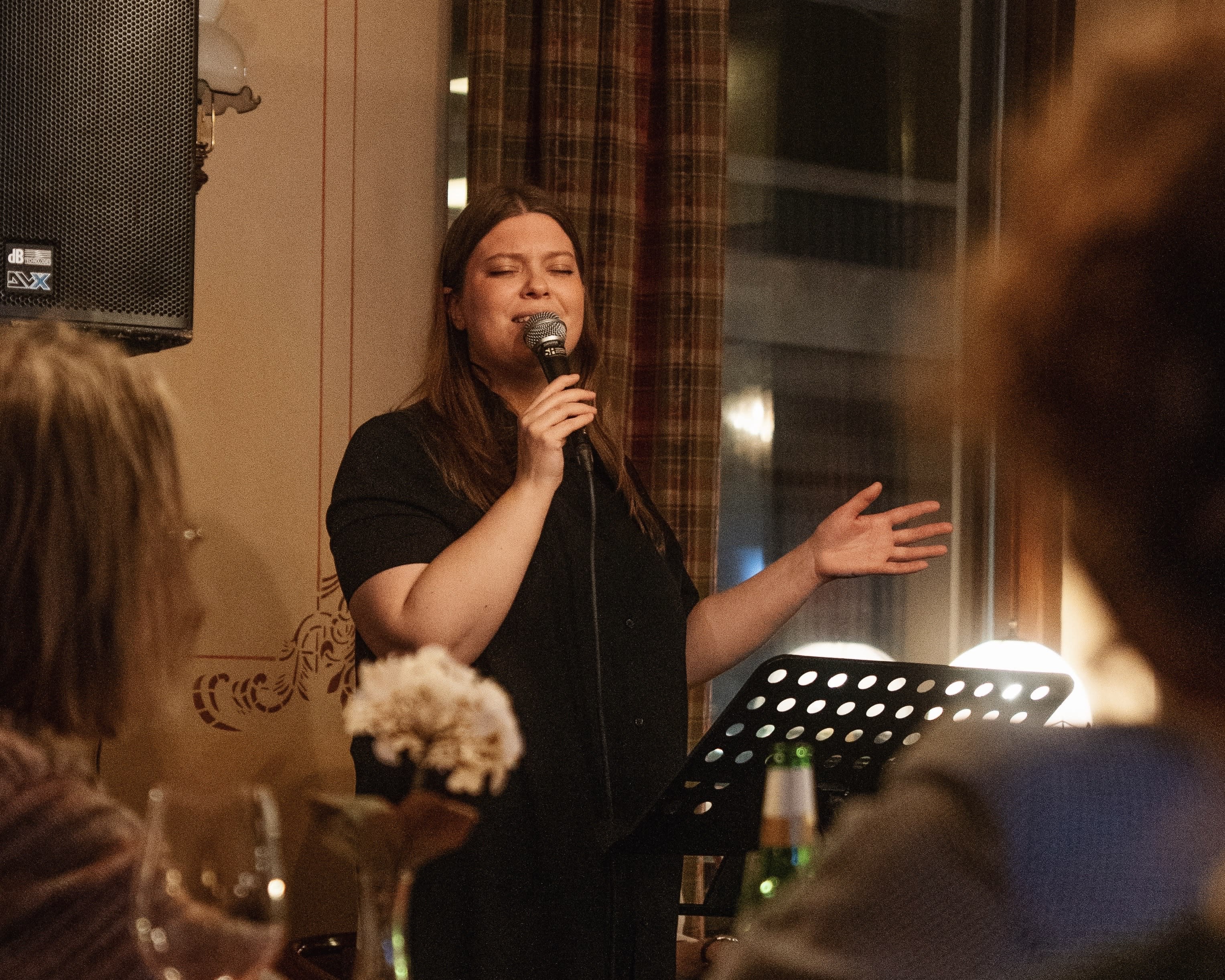 Min bakgrund inom jazz och visa, tillsammans med känsla för moderna låtar, gör att jag kan erbjuda en repertoar som anpassas helt efter era önskemål. Tillsammans väljer vi de sånger som betyder mest för er, och jag framför dem med värme, professionalism och närvaro.