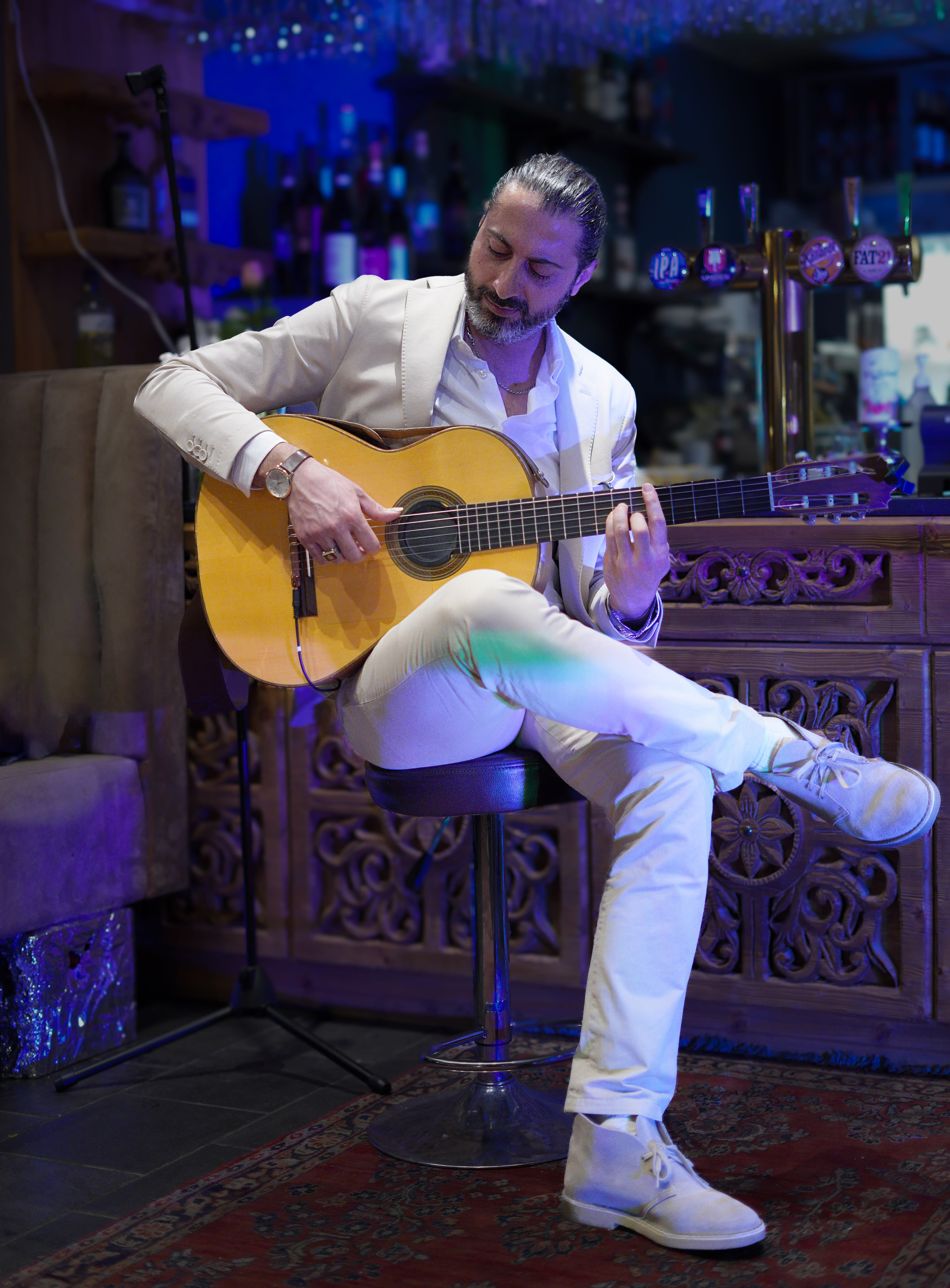 Jag är en gitarrist specialiserad på pop-flamenco – en blandning av rytmisk flamenco och melodisk pop. Min musik är lugn, instrumental och skapar en varm, inbjudande stämning som passar perfekt för restauranger, barer, bröllop och privata tillställningar som födelsedagar eller mingel. Oavsett om det handlar om bakgrundsmusik under en middag eller att ge liv åt ett event med stil, levererar jag en upplevelse som både känns och hörs.