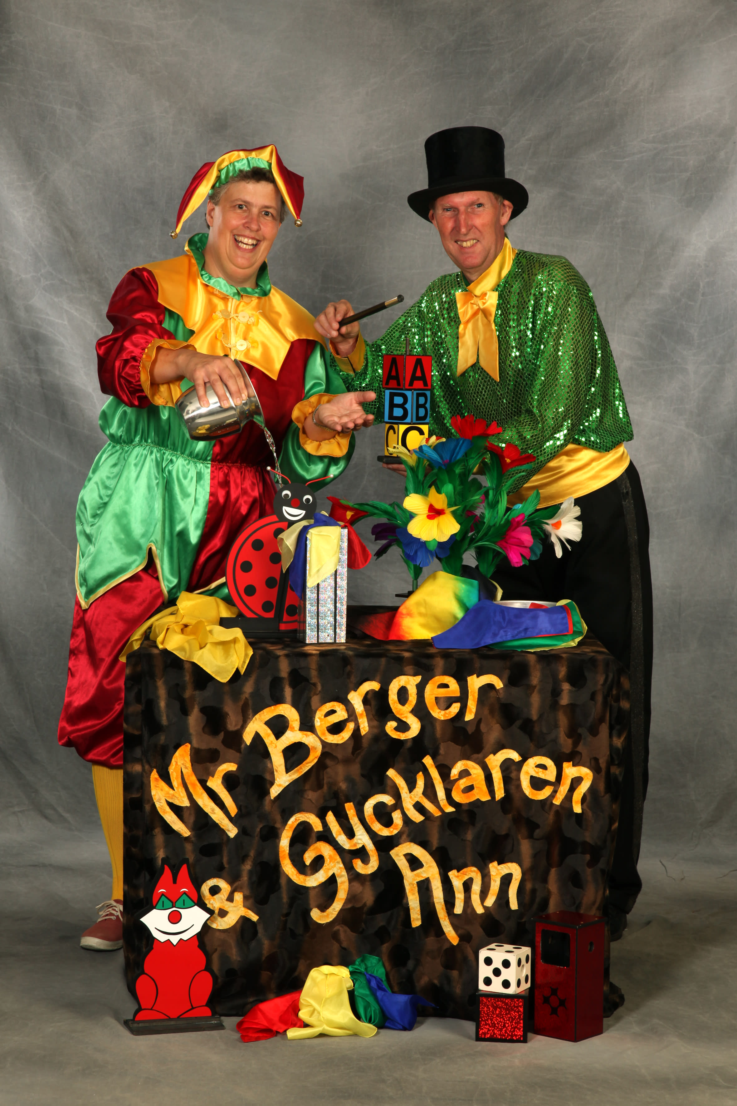 Vi trollar som Mr Berger & Gycklaren Ann. Vi har gjort detta sedan 1988, de senaste tjugo åren på heltid.