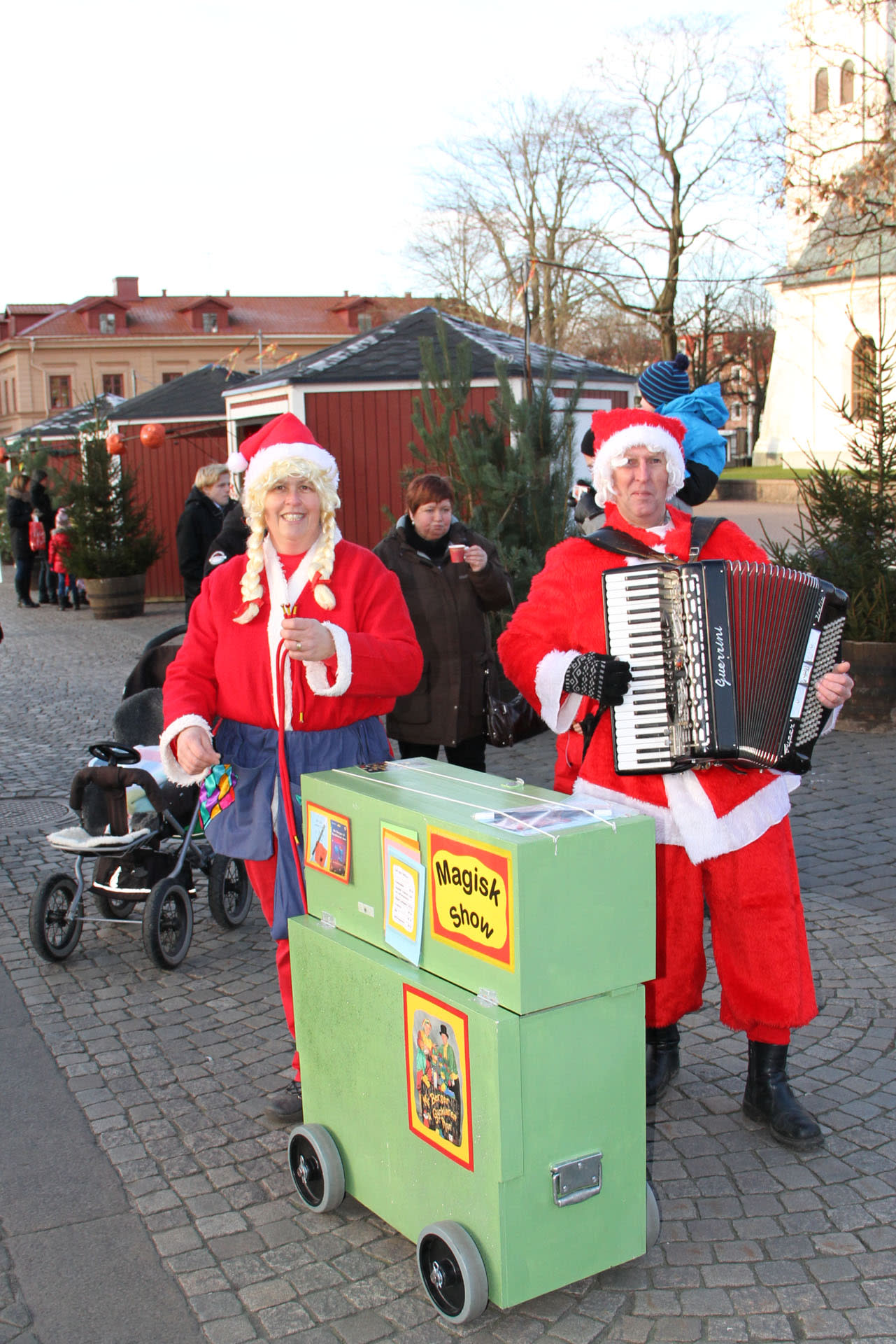 På julfester trollar vi som tomtar och leder dansen kring granen med dansledare och dragspelsmusik.