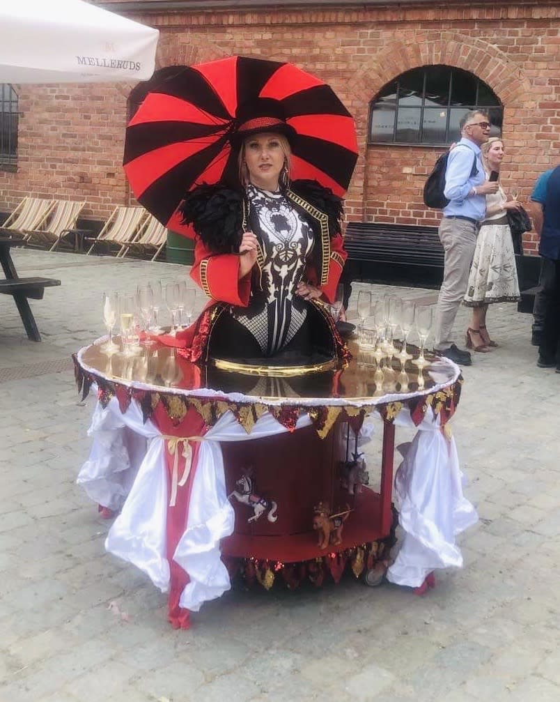 Walking decoration, walking table, Strolling table, mingle, showgirl, welcomer